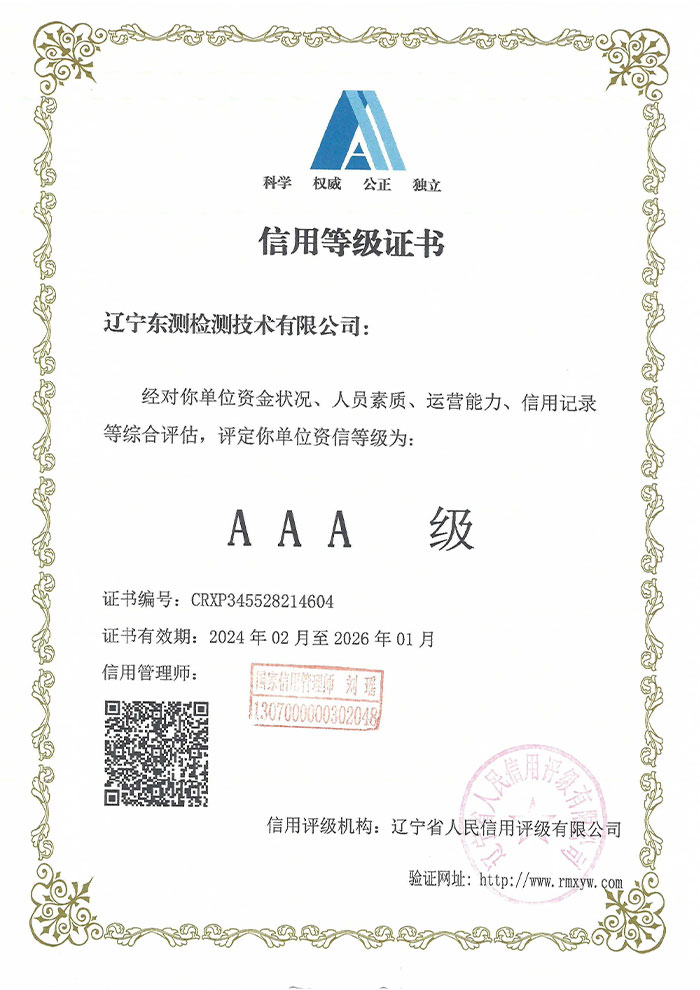 遼寧東測檢測技術(shù)有限公司成立于2007年6月21日,專注于為客戶提供計量、檢測以及技術(shù)咨詢與培訓(xùn)的第三方計量檢測機構(gòu)。遼寧東測檢測技術(shù)有限公司通過了中國合格評定國家認(rèn)可委員會認(rèn)可(CNAS),獲得檢驗檢測機構(gòu)資質(zhì)認(rèn)定(CMA),憑借著高效的服務(wù)網(wǎng)絡(luò)、雄厚的技術(shù)實力以及全面的業(yè)務(wù)范圍,本著“科學(xué)、公正、準(zhǔn)確、真誠”的質(zhì)量方針,為社會提供優(yōu)質(zhì)計量檢測服務(wù),打造國內(nèi)具有價值的計量技術(shù)機構(gòu)。